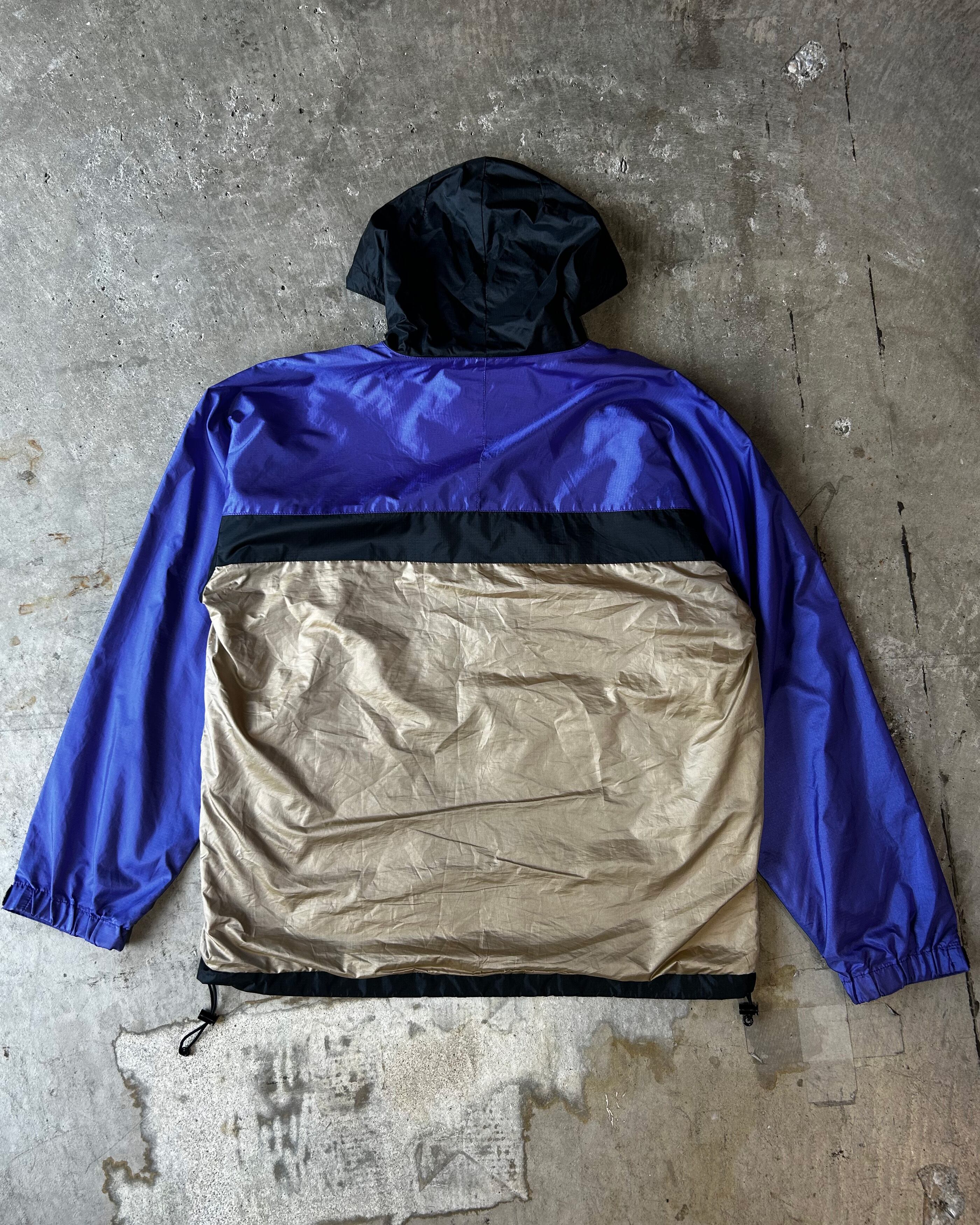 色の切り替えが特徴のマウンテンパーカー。裾にドローコードが付いており、裏地も暖かく冬本番でも着用できる。